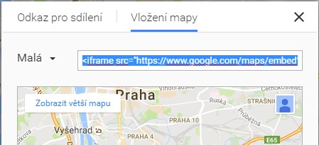 Ze stránek Google maps v nabídce vyberte “Sdílet nebo vložit mapu”,